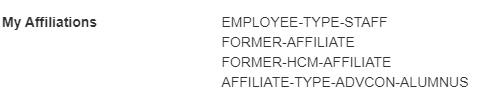 To check what CalNet Affiliations you have, login to the Calnet Account Manager site. You will see your affiliations. These are controlled at the HR level.